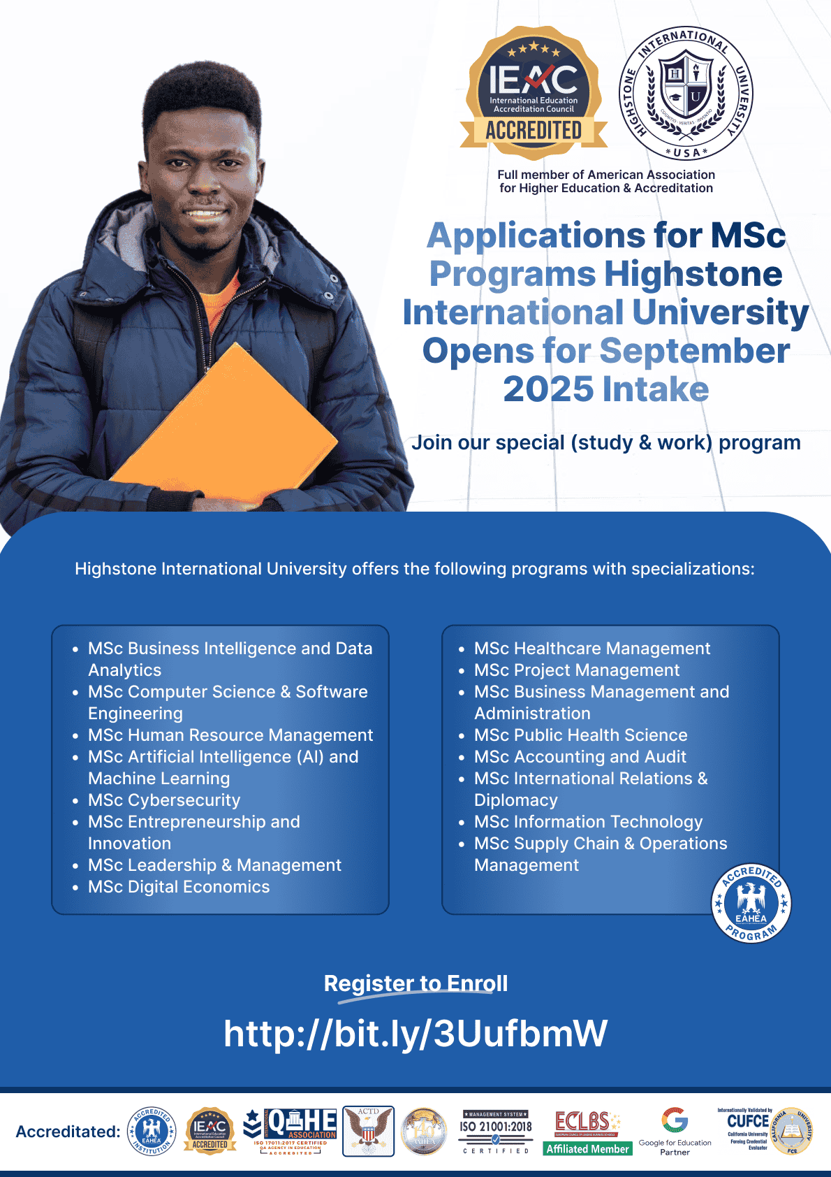 Begin your journey to academic success at Highstone International University. Apply for admission in 2025 and unlock a world of possibilities. We're excited to help you achieve your goals.
